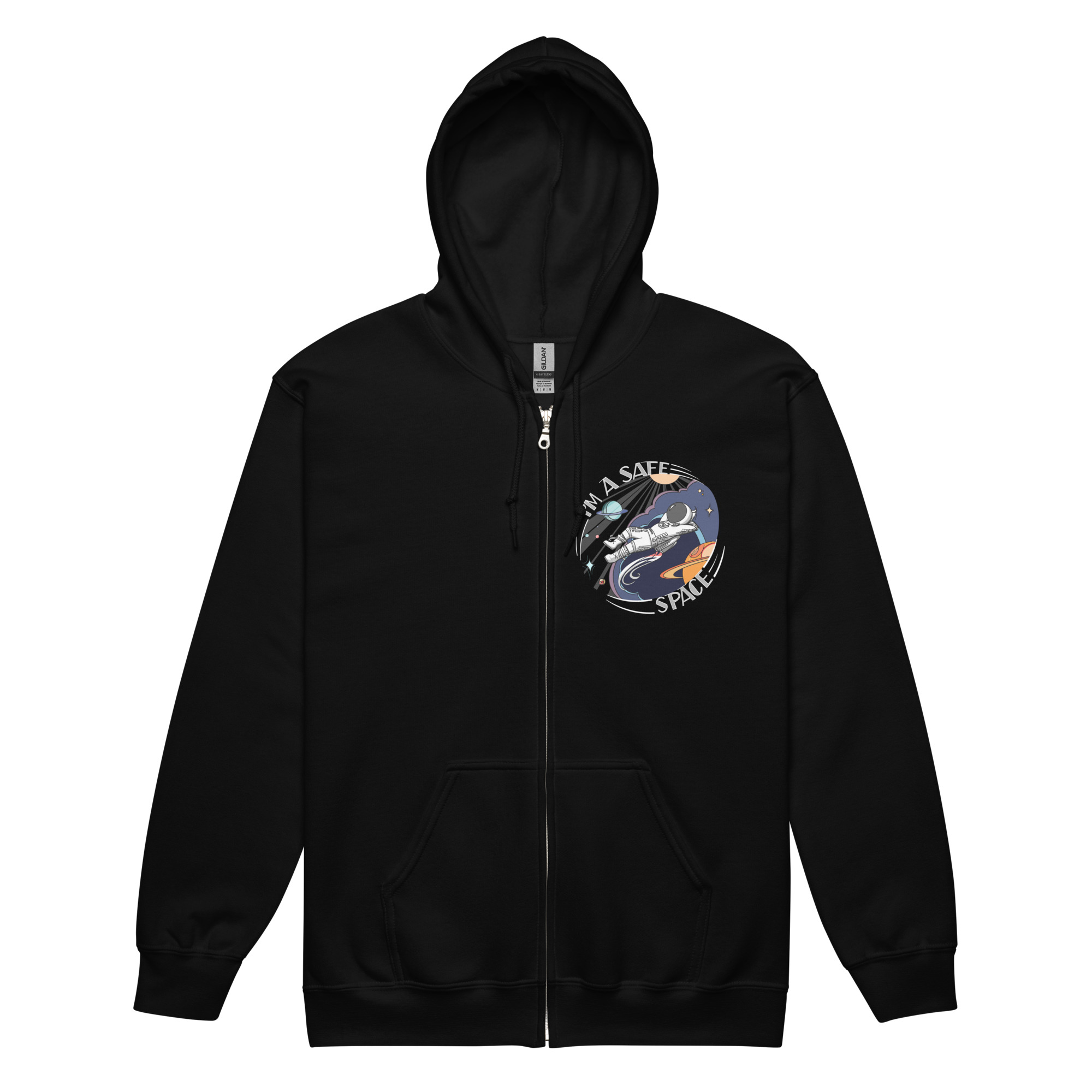 It’s been asked for over and over again and for accessibility reasons, the zipper hoodie is now available in our Safe Space print.